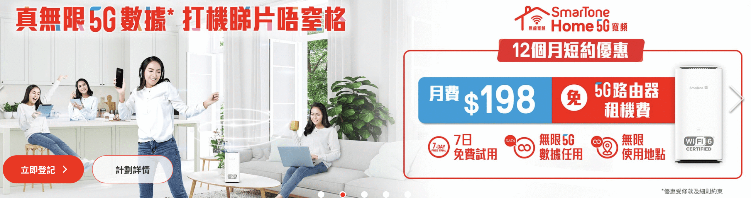 SmarTone 家居寬頻提供多種方案供選擇,最短合約期為 12 個月,但月費較高,為HK$198。如果你希望選擇平價方案,可以考慮簽訂 30 個月的合約,合約期間每月將獲得$1332 的月費回贈,平均每月僅需HK$98,且無需支付行政費用。然而,若你需要使用 5G 路由器,則需要額外支付租用或購買費用。